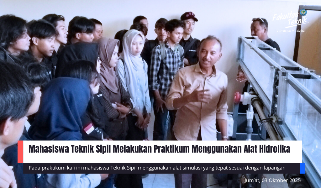 Mahasiswa Program Studi Teknik Sipil bersama dengan dosen pengampu Dr. Mangabit Juliandar Simanjuntak, ST., MT. melakukan simulasi atau praktikum menggunakan alat Hidrolika di laboratorium Teknik Sipil pada Jum’at (03/10/2025).
