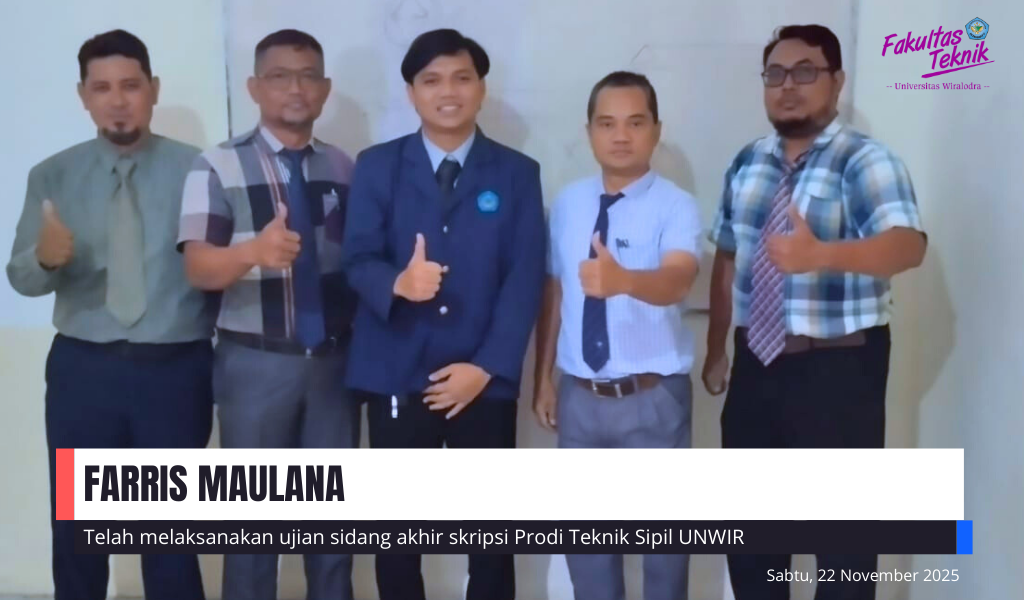 Fakultas Teknik Unwir melaksanakan sidang Skripsi Mahasiswa Program Studi Teknik Sipil an. Farris Maulana. Sabtu (22/11/2025).