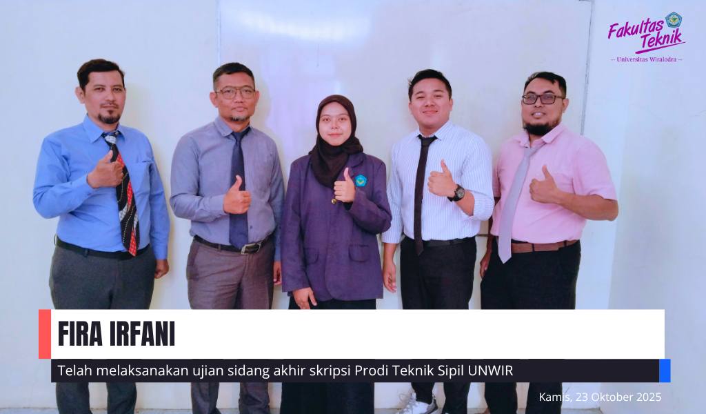 Fakultas Teknik Unwir melaksanakan sidang Skripsi Mahasiswa Program Studi Teknik Sipil an. Fira Irfani. Kamis (23/10/2025).