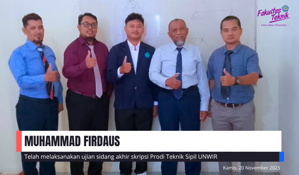 Fakultas Teknik Unwir melaksanakan sidang Skripsi Mahasiswa Program Studi Teknik Sipil an. Herdi Maulana. Kamis (20/11s/2025).